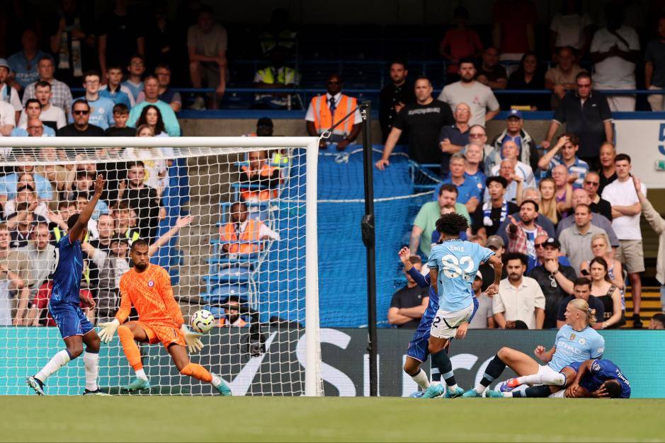 内托上场后,蓝军的攻势大有起色,双方真正的对攻就此开始。小将刘易斯险些主宰攻防两端——他先是迅速回防抢先一脚破坏内托的单刀,随后又在乱战中接哈兰德的回敲劲射破门,只可惜哈兰德被裁定犯规在先,进球无效。